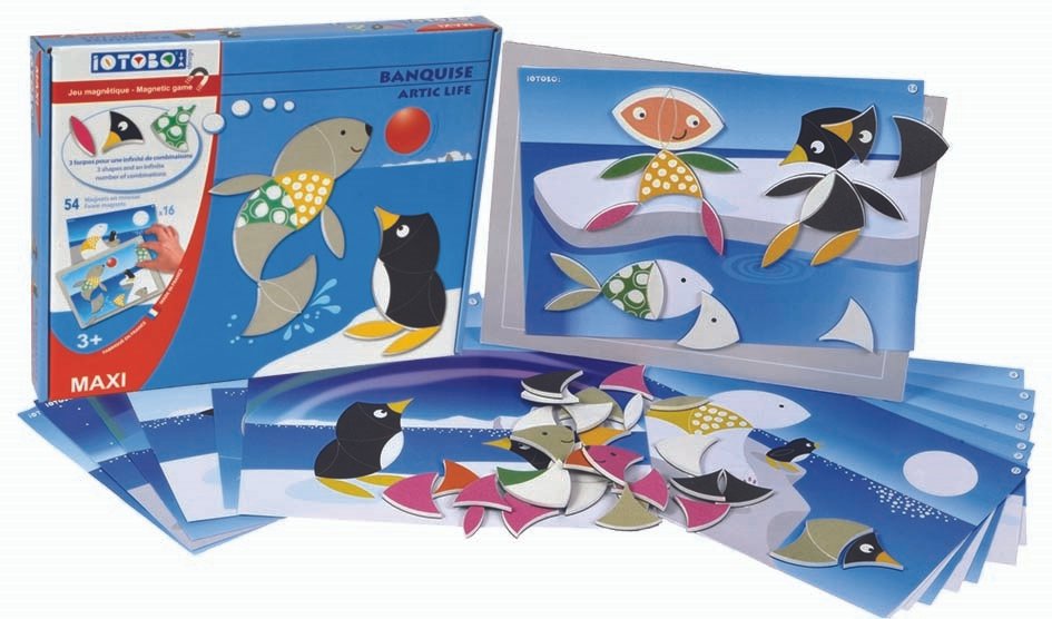 - 16 skirtingų paveikslų ant kurių dėliojami magnetukai dydis 260 x 190 mm.